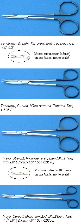 $40 Supercut Scissors, Tenotomy, straight, micro-serrated, tapered tips,115mm (4.5") 1667J23110------------------ $40 Supercut Scissors, Tenotomy, straight, micro-serrated, tapered tips,125mm (4.9") 1667J23130------------------ $40 Supercut Scissors, Tenotomy, straight, micro-serrated, tapered tips,140mm (5.5") 1667J23150------------------ $40 Supercut Scissors, Tenotomy, straight, micro-serrated, tapered tips,160mm (6.3") 1667J23100------------------ $40 Supercut Scissors, Tenotomy, curved, micro-serrated, tapered tips,115mm (4.5") 1667J23120------------------ $40 Supercut Scissors, Tenotomy, curved, micro-serrated, tapered tips,125mm (4.9") 1667J23140------------------ $40 Supercut Scissors, Tenotomy, curved, micro-serrated, tapered tips,140mm (5.5") 1667J23160------------------ $40 Supercut Scissors, Tenotomy, curved, micro-serrated, tapered tips,160mm (6.3") 1667J23170------------------ $40 Supercut Scissors, Mayo, straight, micro-serrated,blunt/blunt tips, 115mm(4.5") 1667J23190------------------ $40 Supercut Scissors,Mayo,straight, micro-serrated,blunt/blunt tips,125mm(4.9") 1667J23210------------------ $40 Supercut Scissors, Mayo, straight, micro-serrated,blunt/blunt tips,140mm(5.5") 1667J23230------------------ $40 Supercut Scissors, Mayo, straight, micro-serrated,blunt/blunt tips,160mm(6.3") 1667J23270------------------ $40 Supercut Scissors, Mayo, straight, micro-serrated,blunt/blunt tips,200mm(7.8") 1667J23310------------------ $40 Supercut Scissors, Mayo, straight, micro-serrated,blunt/blunt tips,250mm(9.8") 1667J23180------------------ $40 Supercut Scissors, Mayo, straight, micro-serrated,blunt/blunt tips,115mm(4.5") 1667J23200------------------ $40 Supercut Scissors, Mayo, straight, micro-serrated,blunt/blunt tips,125mm(4.9") 1667J23220------------------ $40 Supercut Scissors, Mayo, straight, micro-serrated,blunt/blunt tips,140mm(5.5") 1667J23240------------------ $40 Supercut Scissors, Mayo, straight, micro-serrated,blunt/blunt tips,160mm(6.3") 1667J23280------------------ $40 Supercut Scissors, Mayo, straight, micro-serrated,blunt/blunt tips,200mm(7.8") 1667J23320------------------ $40 Supercut Scissors, Mayo, straight, micro-serrated,blunt/blunt tips,250mm(9.8") |