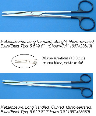 1667J23570------------------ $40 Supercut Scissors, Metzenbaum, straight, micro-serrated,blunt/blunt tips,140mm(5.5") 1667J23610------------------ $40 Supercut Scissors, Metzenbaum, straight, micro-serrated, blunt/blunt tips, 180mm(7.1") 1667J23650------------------ $40 Supercut Scissors, Metzenbaum, straight, micro-serrated, blunt/blunt tips, 220mm(8.7") 1667J23670------------------ $40 Supercut Scissors, Metzenbaum, straight, micro-serrated, blunt/blunt tips, 250mm(9.8") 1667J23580------------------ $40 Supercut Scissors, Metzenbaum, straight, micro-serrated,blunt/blunt tips,140mm(5.5") 1667J23620------------------ $40 Supercut Scissors, Metzenbaum, straight, micro-serrated,blunt/blunt tips,180mm(7.1") 1667J23660------------------ $40 Supercut Scissors, Metzenbaum, straight, micro-serrated,blunt/blunt tips,220mm(8.7") 1667J23680------------------ $40 Supercut Scissors, Metzenbaum, straight, micro-serrated, blunt/blunt tips, 250mm(9.8") |